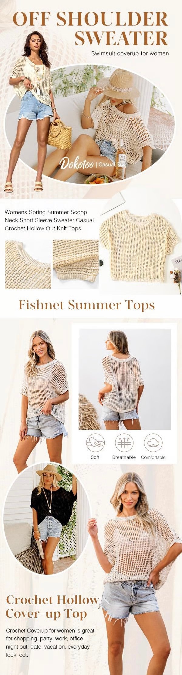 π¬οΈ Made from lightweight, breathable material, our crochet hollow out knit tops are perfect for warm weathe